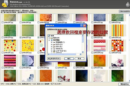 你可以選擇救援後檔案存放的地方, 最放存放在不同磁碟, 避免還有檔案尚需要救援, 而因目前已救援檔案存放的動作, 佔據待救援檔案的磁區, 造成檔案無法救援!!