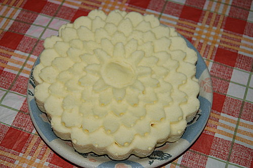將全部的材料拌好, 倒入矽膠模, 就送進大同電鍋裡蒸煮。蒸熟的蛋糕還不錯看, 淡淡的檸檬味散發在空氣中!!!