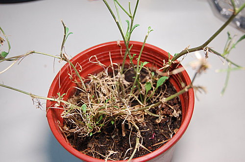 整株都被啃光了, 原本我只以為芝麻菜有病變問題, 所以才長成這付德行, 結果就在被啃光後, 才發現到菜蟲在上面爬...., 而且仔細尋找, 竟然就發現4隻 !!!