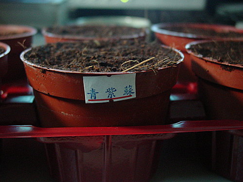 先種6盆青紫蘇, 盤子拿來充當水盤, 真是太合了....
